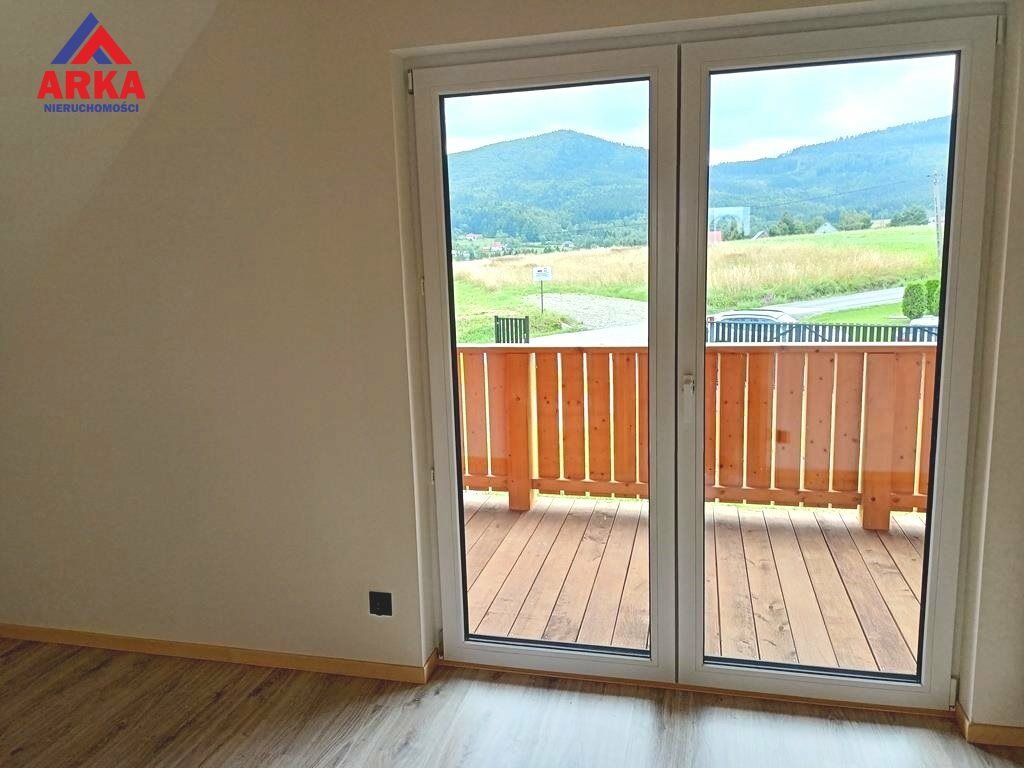 Działka o powierzchni 1357 m 2 , o minimalnym pochyle i nieregularnym kształcie zbliżonym do trapezu o wymiarach 38x37x25x46m. Teren ogrodzony siatką panelową na podmurówce oraz wyposażony w solidną bramę wjazdową. Nieruchomość znajduje się na wzniesieniu, z którego rozpościera się bajeczny widok na okoliczne góry i lasy.